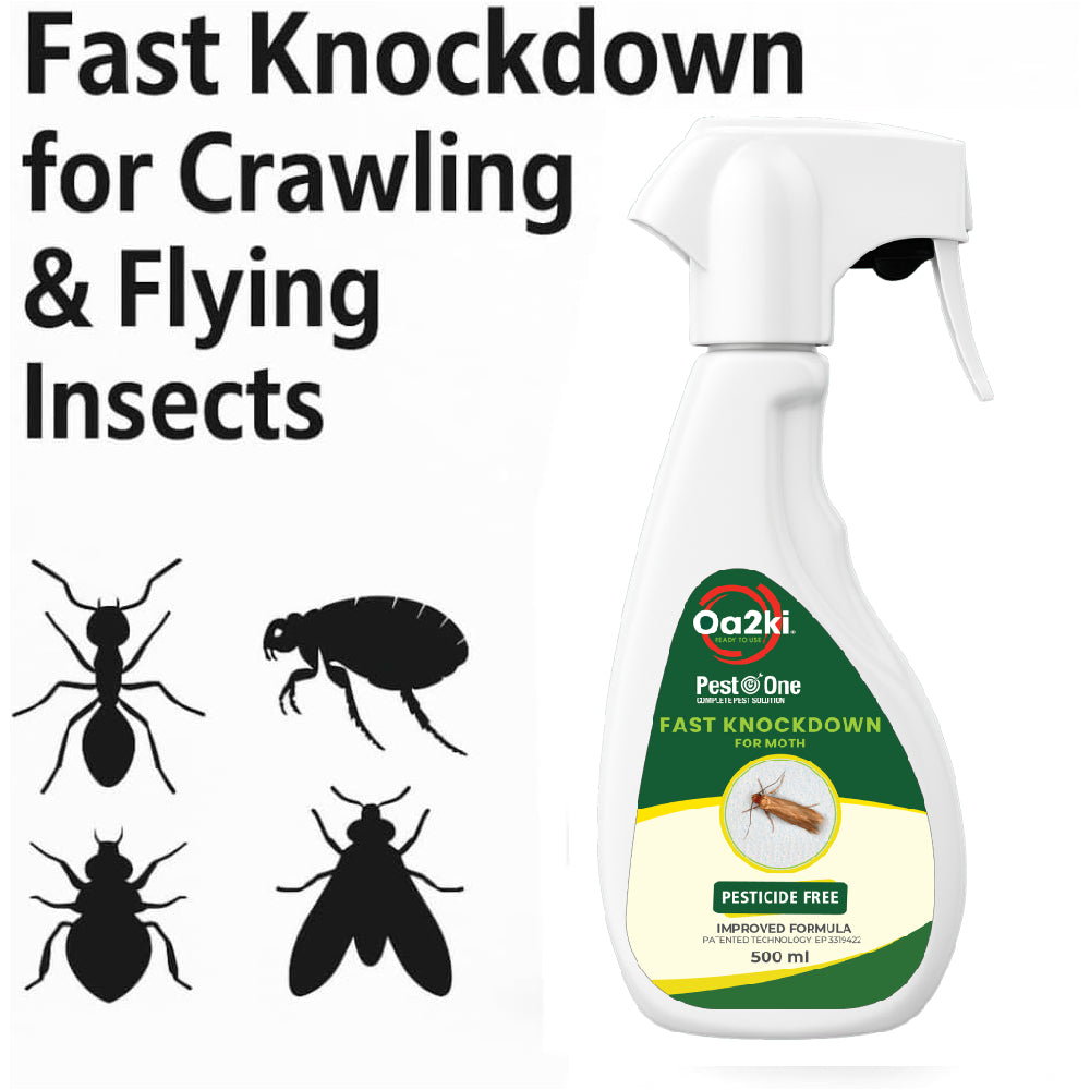 Oa2ki Moth Spray 500ml is a pesticide free household moth spray designed for fast knockdown of clothes moths and carpet moths commonly found in UK homes.